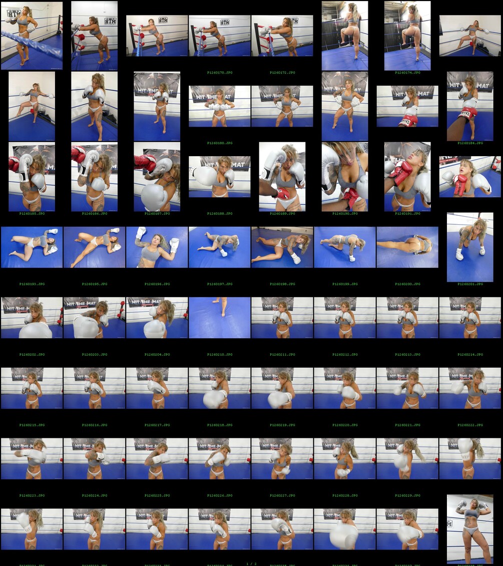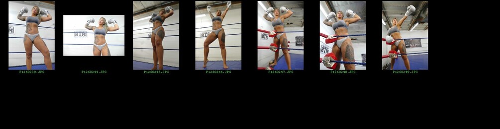 Photos of Warrior Amazon from her POV boxing shoot sporting grey gloves, top and panties. Hot posing, punching, some burst shots, victory shots and even shots of her taking punches and on her back! Check the slideshow for the thumbnail sheets.